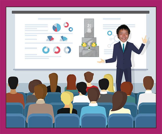 供養のかたちの変化からお墓の形の変化、接してきたお客様の心境のことや供養業界の実情などの裏話、実例も交えながら、どうにか話し終えることができました。保険を取り扱う方々だけあって、お客様の立場に立った鋭い質問も多数いただきました。「単身の場合は、どうすればいいのでしょうか?」「お墓なのか、お寺に預けるのか、はたまた別の供養方法を選ぶのか迷っています」など実際にこれまでの仕事の中で、お客様から相談されたことも多かったのだと思います。普通、誰に相談していいのかわからない。というお悩みを持っている方々が結構多くいるんだろうな。と気付かされた時間にもなりました。