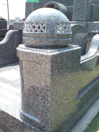 門柱の上の透かし彫りデザイン灯篭も特徴的です。